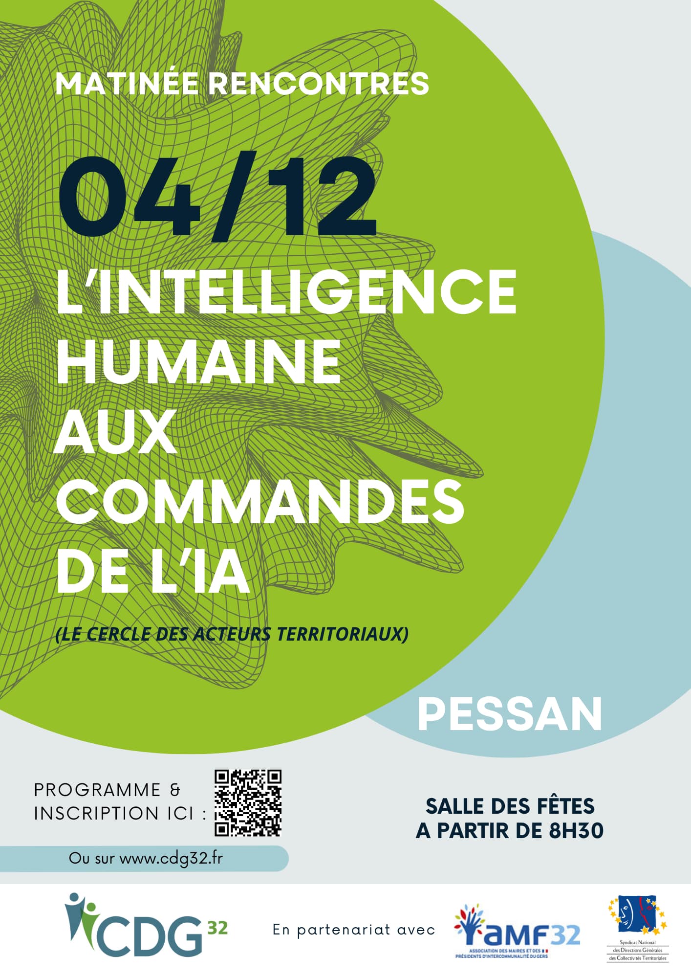 Le Centre de Gestion de la Fonction Publique Territoriale du Gers vous propose de participer à une matinée consacrée à « L’intelligence humaine aux commandes de l’IA » (Cercle des Acteurs Territoriaux) le jeudi 4 décembre 2025 à la salle des fêtes de Pessan.